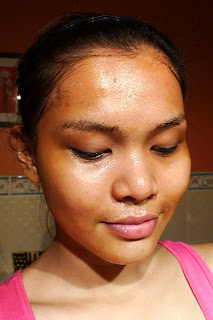 Here my face with the mask. It actually works more of a scrubber than a mask because it's watery and it runs off your face. It imparts a warm sensation which is probably caused by the friction due to scrubbing.