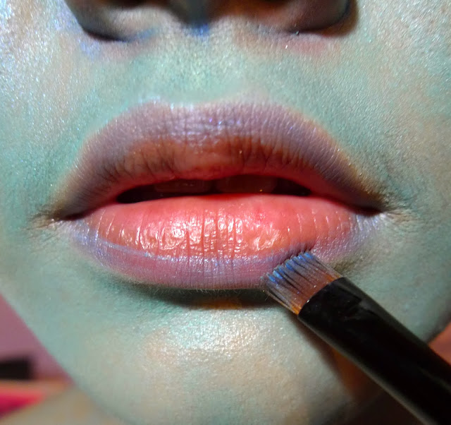 STEP 17: Apply Pale Orange or Nude lipstick on your lips. I mixed MAC Temptingand Fresh Brew in here.